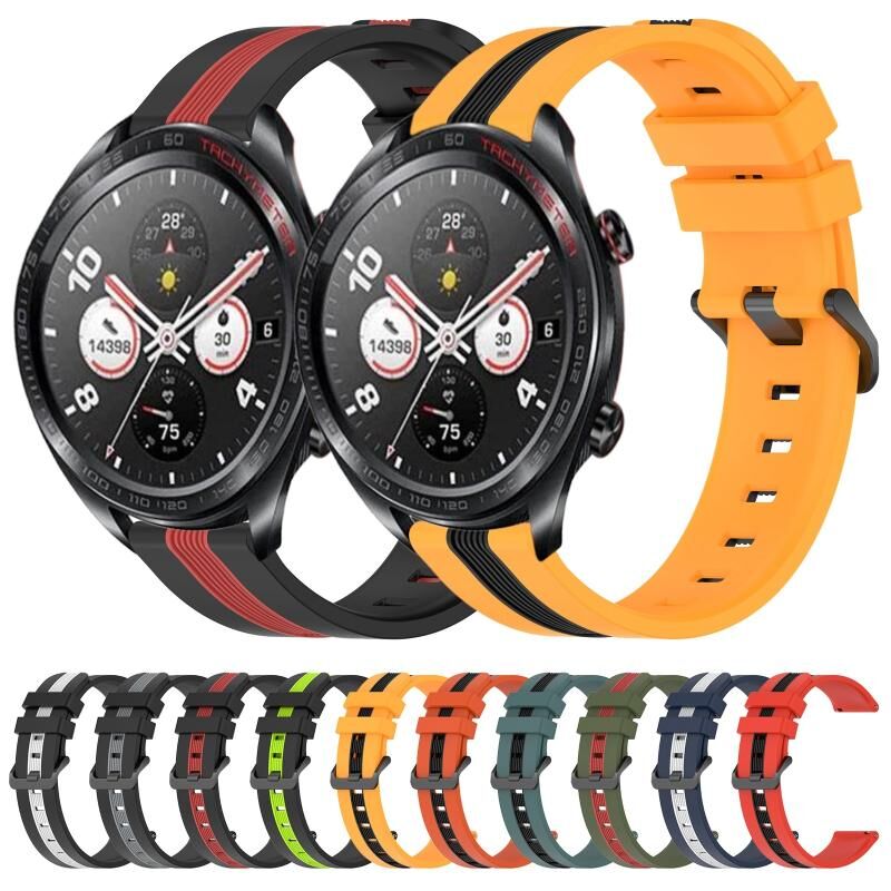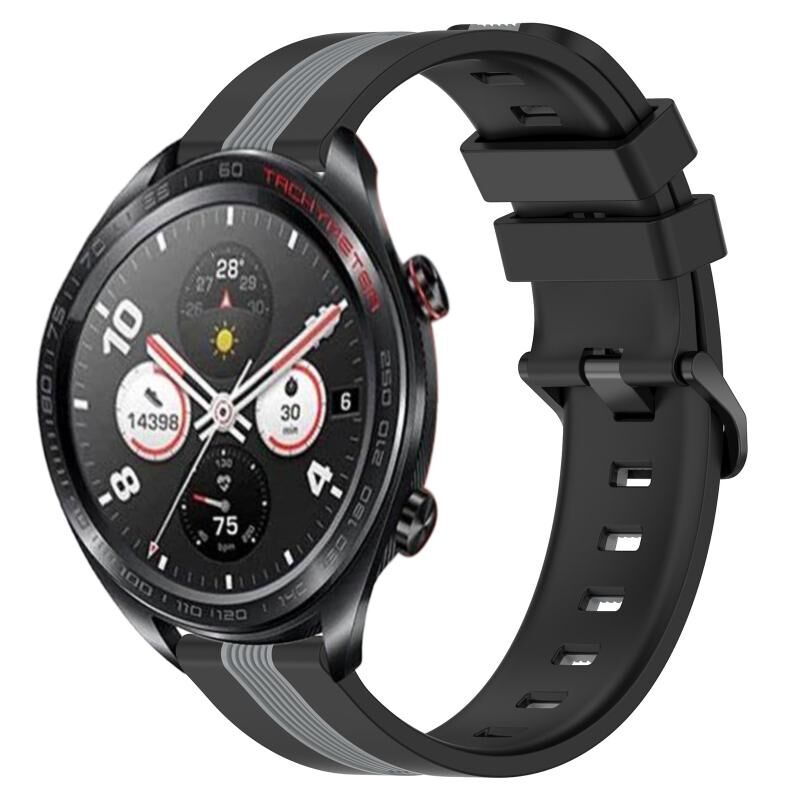 Για το Honor Watch Dream 22mm Κάθετη ζώνη ρολογιού σιλικόνης δύο χρωμάτων (μαύρο + γκρι)