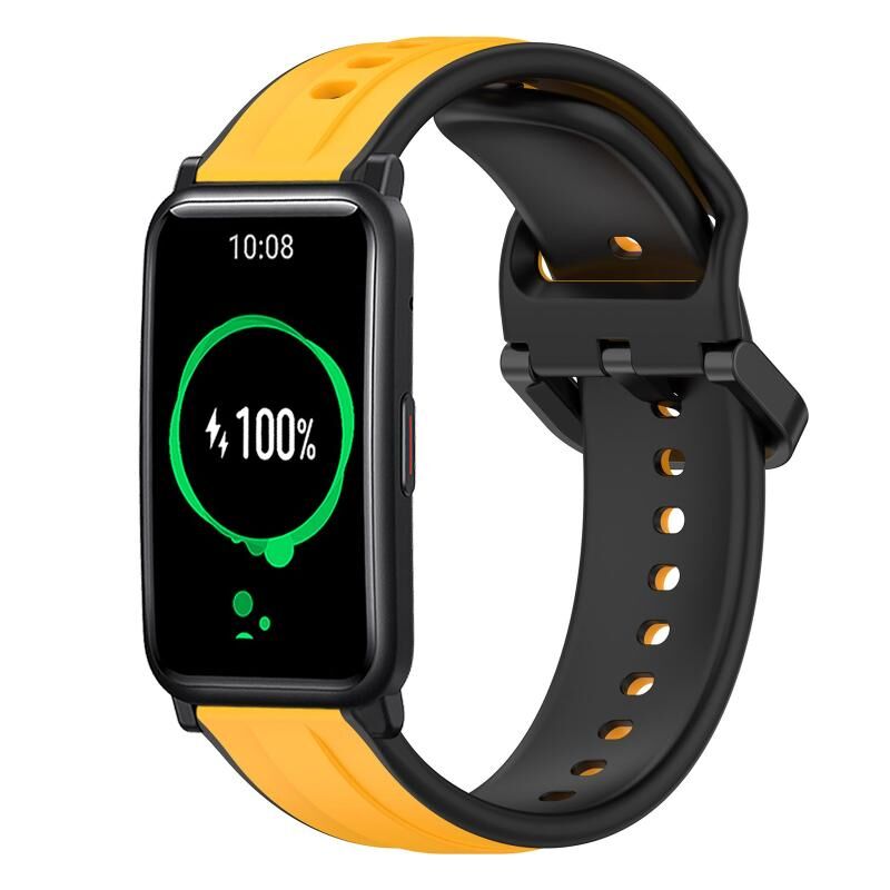 Για το Honor Watch ES 20mm Convex Loop Two-Color Silicone Watch Band (Κίτρινο+Μαύρο)