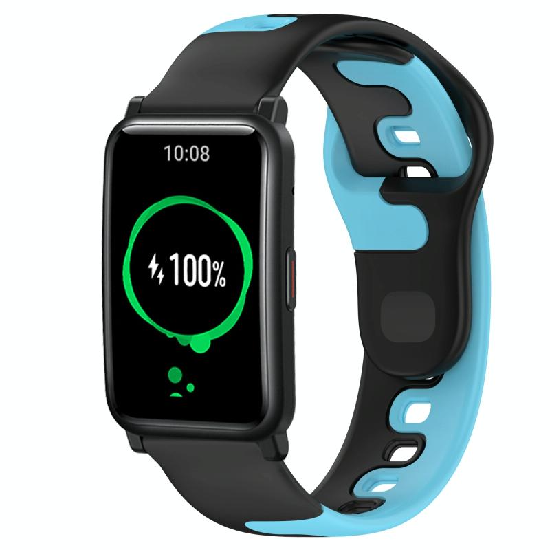 For Honor Watch ES 20mm Double Color Silicone Watch Band(Black+Blue)