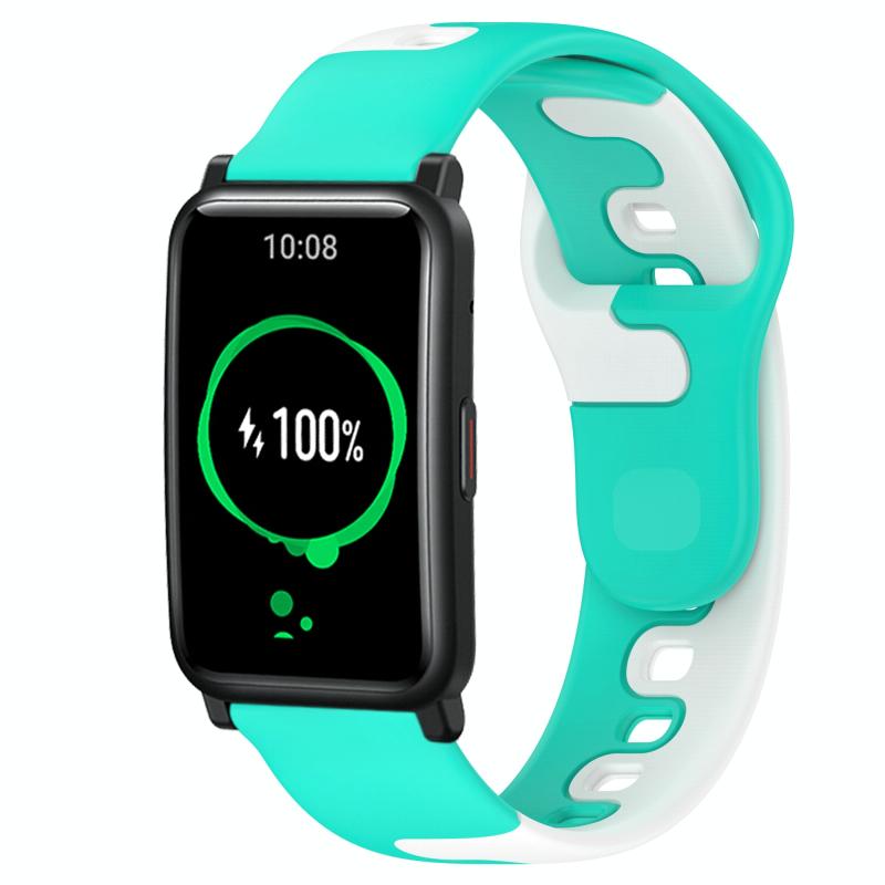 For Honor Watch ES 20mm Double Color Silicone Watch Band(Cyan+White)