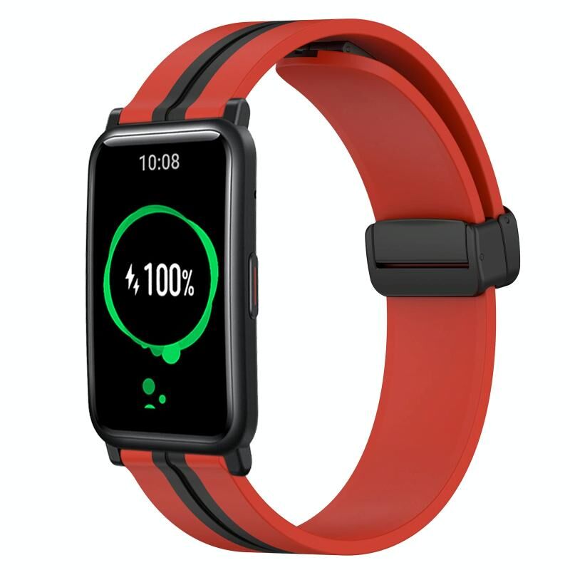 Για το Honor Watch ES 20mm Πτυσσόμενο μαγνητικό κούμπωμα ζώνη ρολογιού σιλικόνης (κόκκινο + μαύρο)