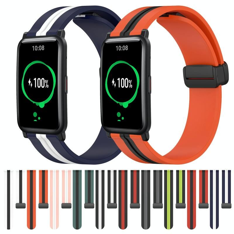 Για το Honor Watch ES 20mm Πτυσσόμενο μαγνητικό κούμπωμα ζώνη ρολογιού σιλικόνης (Λευκό + Μαύρο)