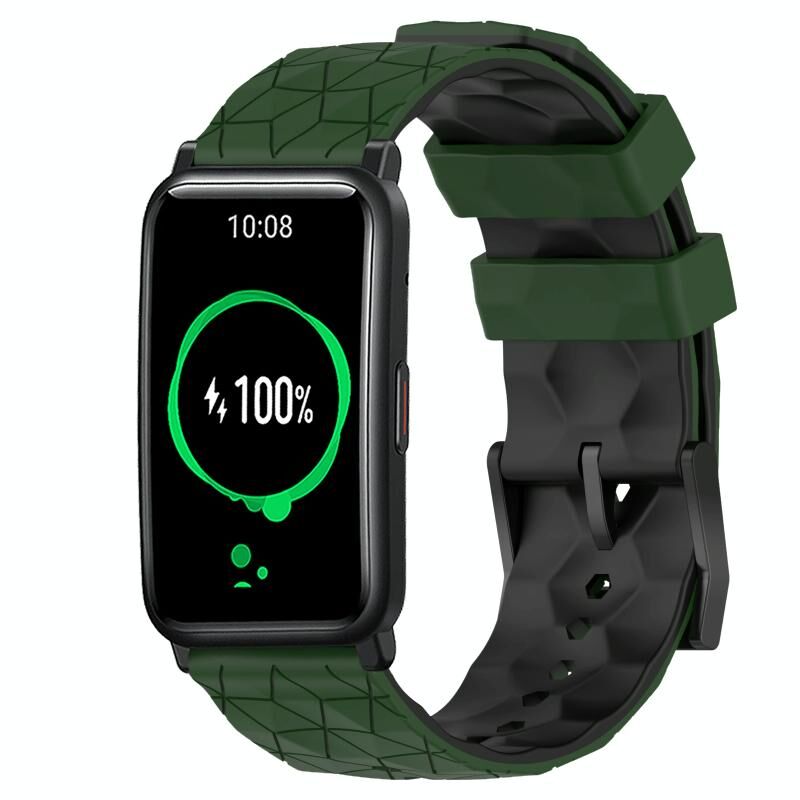 Για το Honor Watch ES 20 χιλιοστά ποδοσφαιρικό μοτίβο δύο χρωμάτων ζώνη σιλικόνης ρολογιού (πράσινο στρατού + μαύρο)