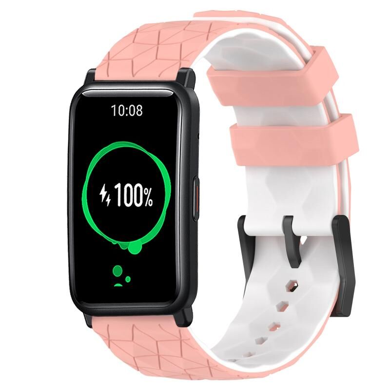 Για το Honor Watch ES 20 χιλιοστά ποδοσφαιρικό μοτίβο δύο χρωμάτων ζώνη σιλικόνης ρολογιού (ροζ + λευκό)
