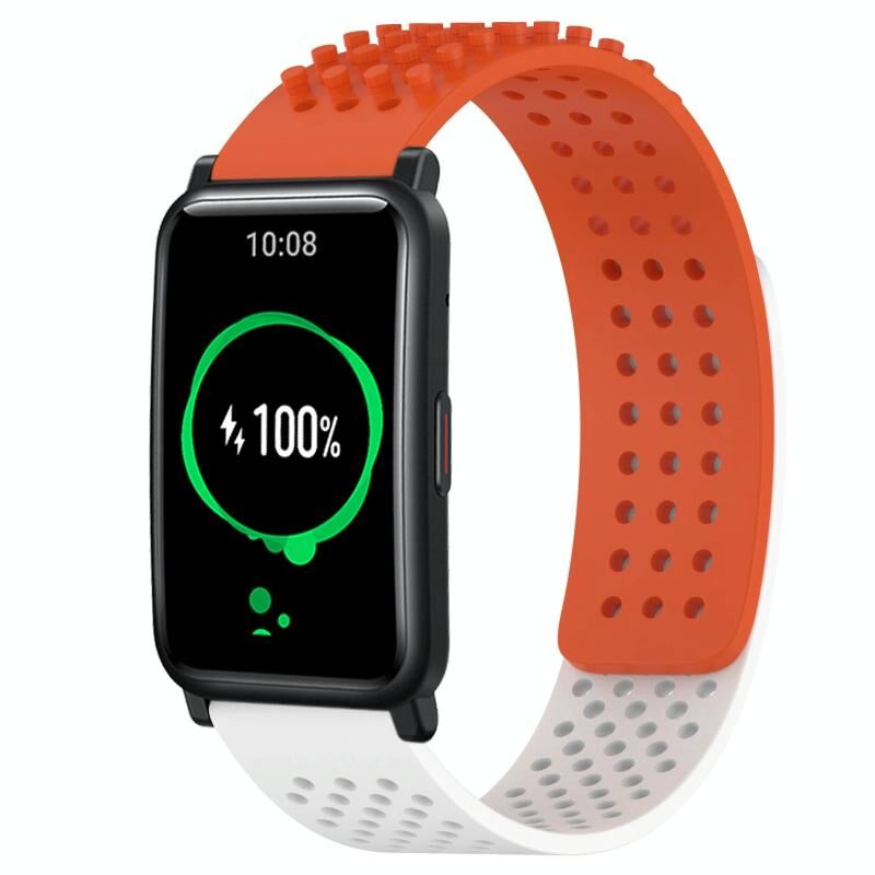Για το Honor Watch ES 20mm τρύπες αναπνεύσιμο 3D Dots σιλικόνης ρολόι μπάντα ρολογιού (πορτοκαλί + λευκό)