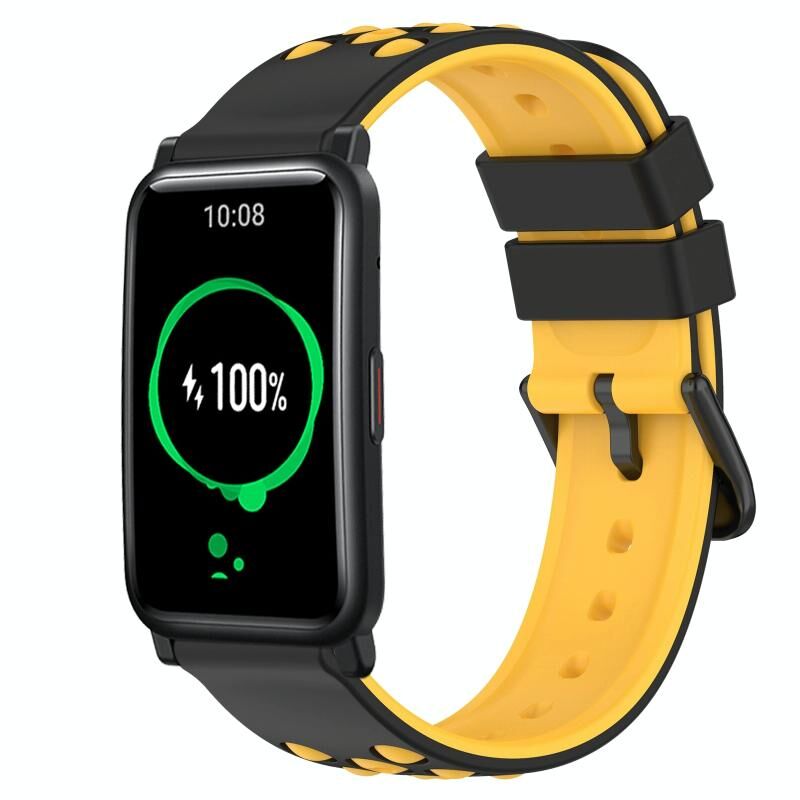Για το Honor Watch ES 20mm Δύο-χρώμα πορώδη ζώνη ρολογιού σιλικόνης (μαύρο + κίτρινο)