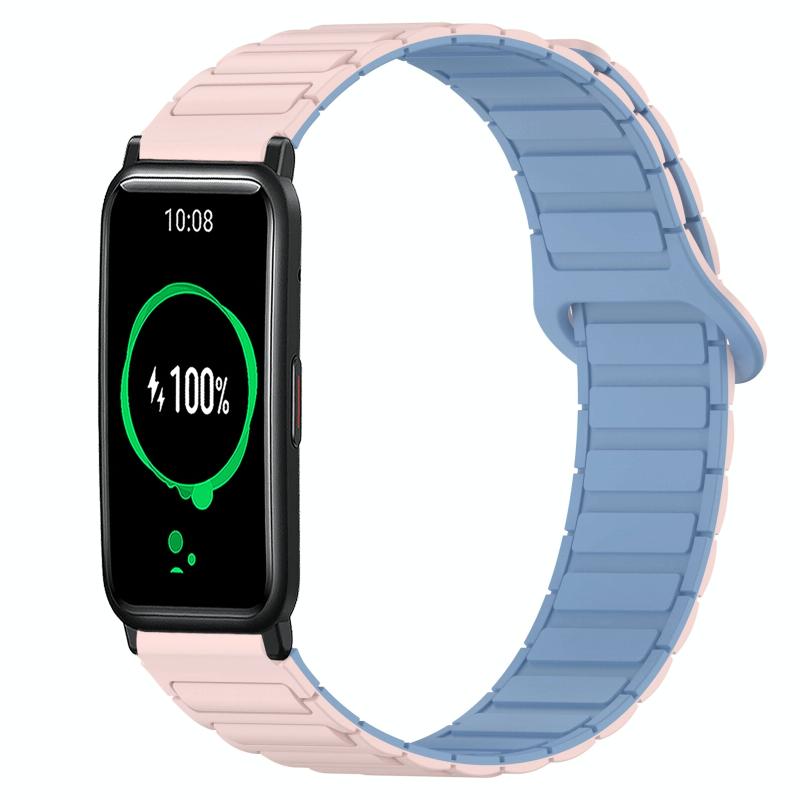 For Honor Watch ES Dual Color Magnetic Buckle 20mm Silicone Watch Band(Pink+Blue)