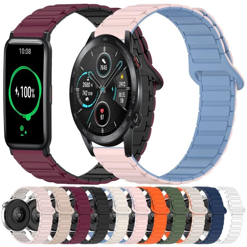 For Honor Watch ES Dual Color Magnetic Buckle 20mm Silicone Watch Band(Pink+Starlight)