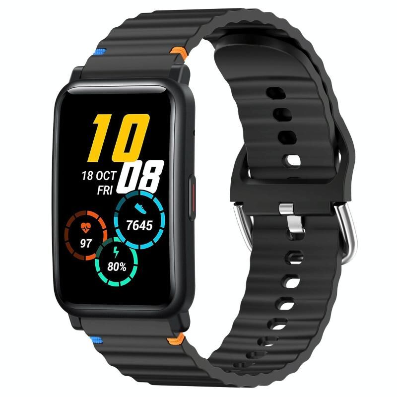 Για το Honor Watch ES / Magic Watch 2 42mm Wavy Grain Stitched 20mm Silicone Watch Band (Μαύρο)