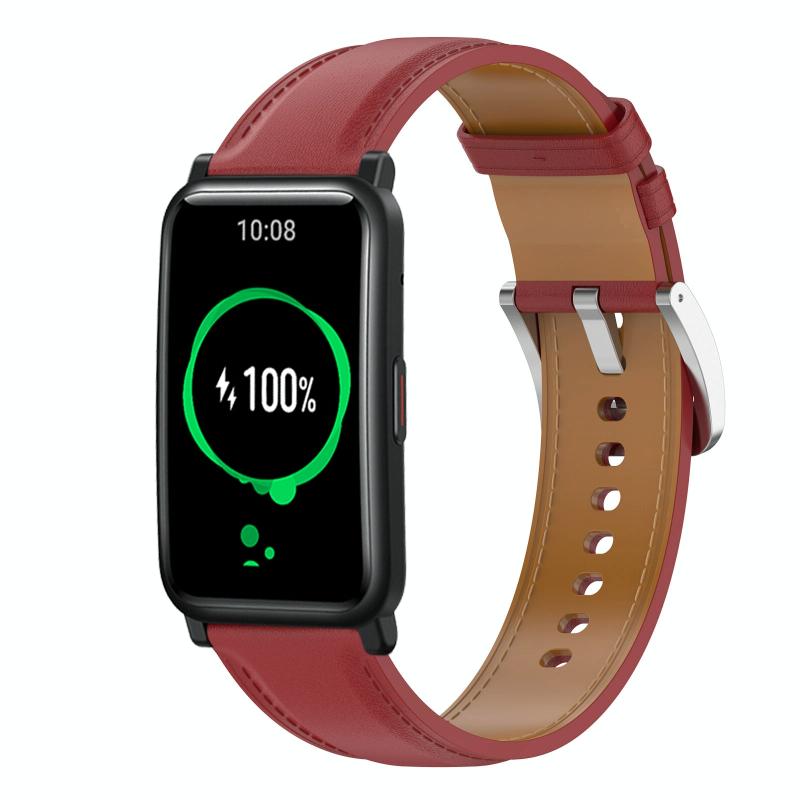 For Honor Watch ES Stainless Steel Quick Release Buckle 20mm Genuine Leather Watch Band(Red)