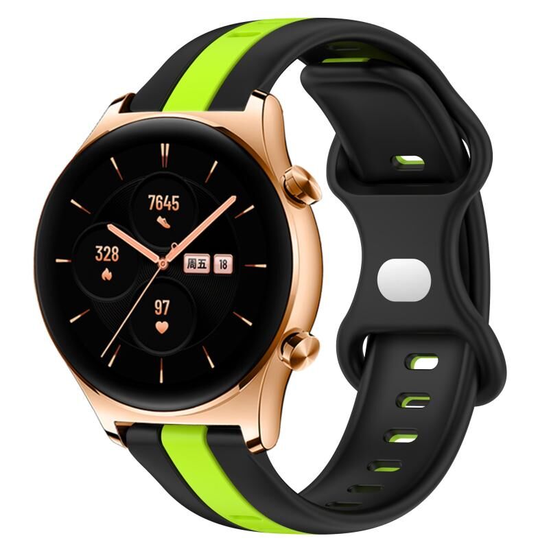 For Honor Watch GS 3 20mm Butterfly Buckle Two-Color Silicone Watch Band(Black+Green)