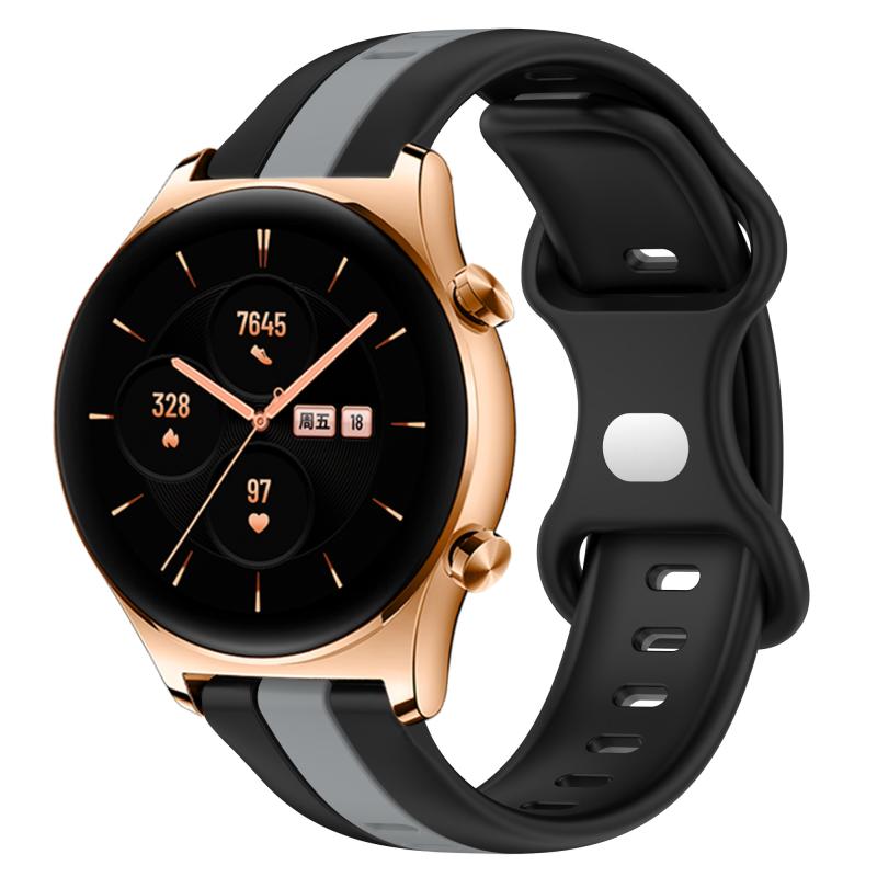 For Honor Watch GS 3 20mm Butterfly Buckle Two-Color Silicone Watch Band(Black+Grey)