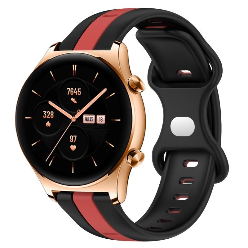 For Honor Watch GS 3 20mm Butterfly Buckle Two-Color Silicone Watch Band(Black+Red)
