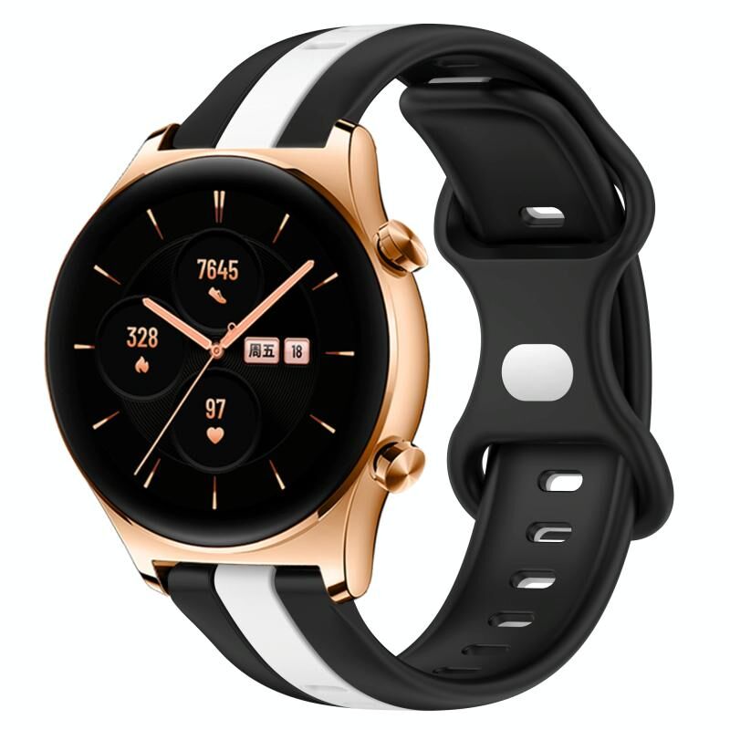 For Honor Watch GS 3 20mm Butterfly Buckle Two-Color Silicone Watch Band(Black+White)