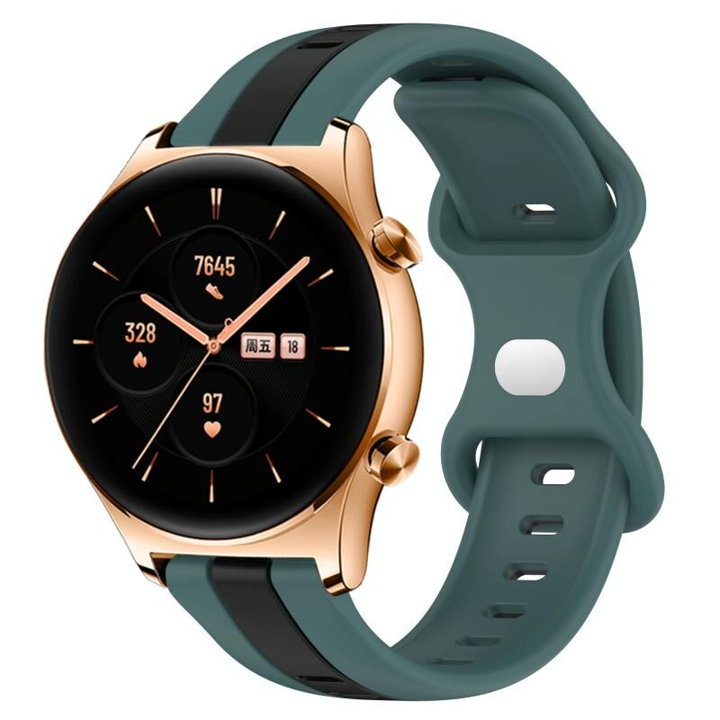 For Honor Watch GS 3 20mm Butterfly Buckle Two-Color Silicone Watch Band(Green+Black)