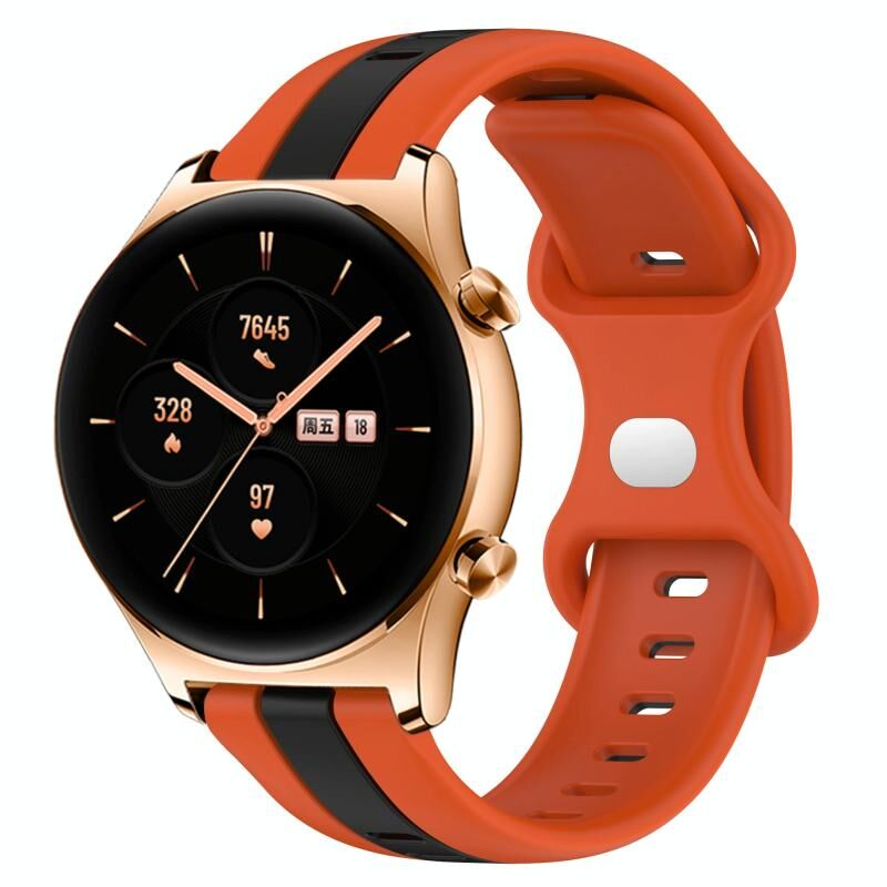 For Honor Watch GS 3 20mm Butterfly Buckle Two-Color Silicone Watch Band(Orange+Black)