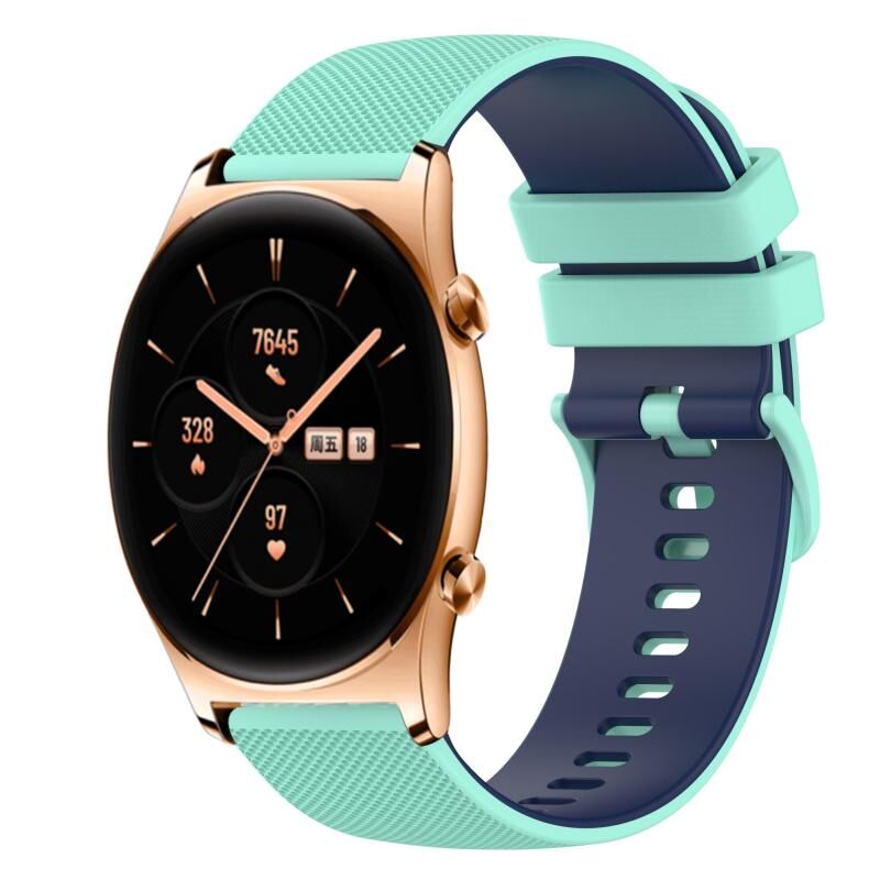 For Honor Watch GS 3 22mm Checkered Two-Color Silicone Watch Band(Teal+Blue)