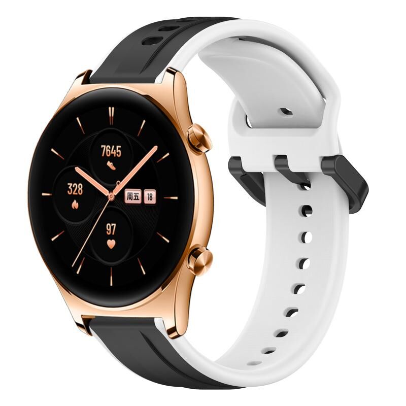 Για το Honor Watch GS 3 22mm Convex Loop Two-Color Silicone Watch Band (μαύρο+λευκό)