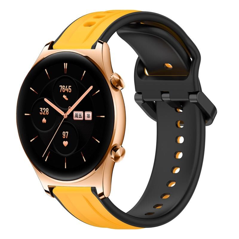 Για το Honor Watch GS 3 22mm Convex Loop Two-Color Silicone Watch Band (Κίτρινο+Μαύρο)