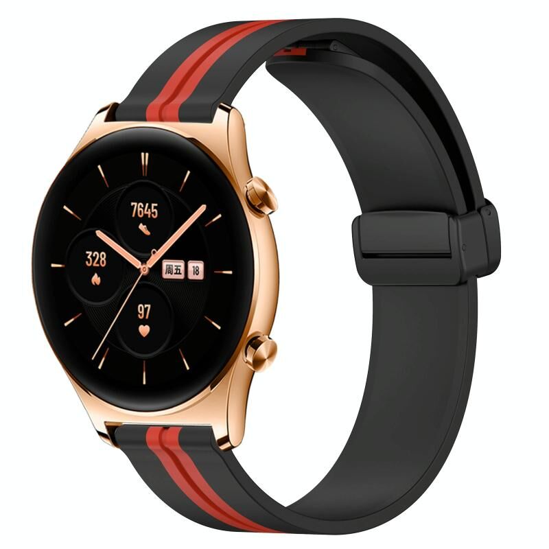 Για το Honor Watch GS 3 22mm Πτυσσόμενο μαγνητικό κούμπωμα ζώνη ρολογιού σιλικόνης (μαύρο + κόκκινο)