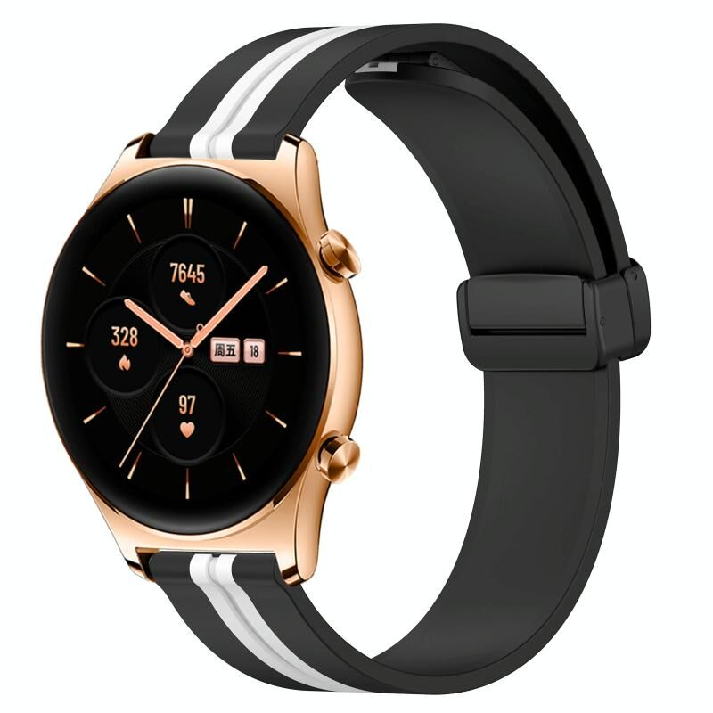 Για το Honor Watch GS 3 22mm Πτυσσόμενο μαγνητικό κούμπωμα ζώνη ρολογιού σιλικόνης (μαύρο+λευκό)