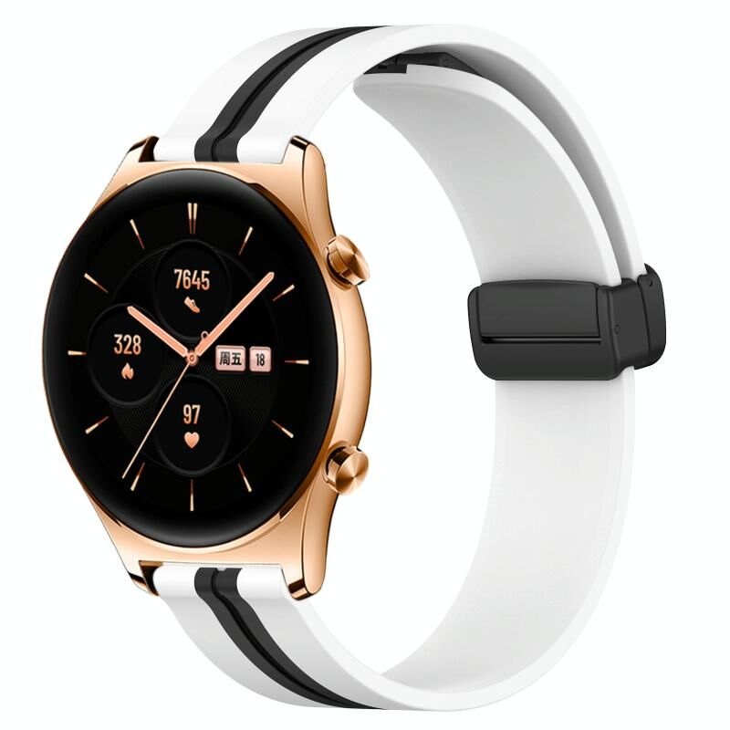 Για το Honor Watch GS 3 22mm Πτυσσόμενο μαγνητικό κούμπωμα ζώνη ρολογιού σιλικόνης (Λευκό+Μαύρο)