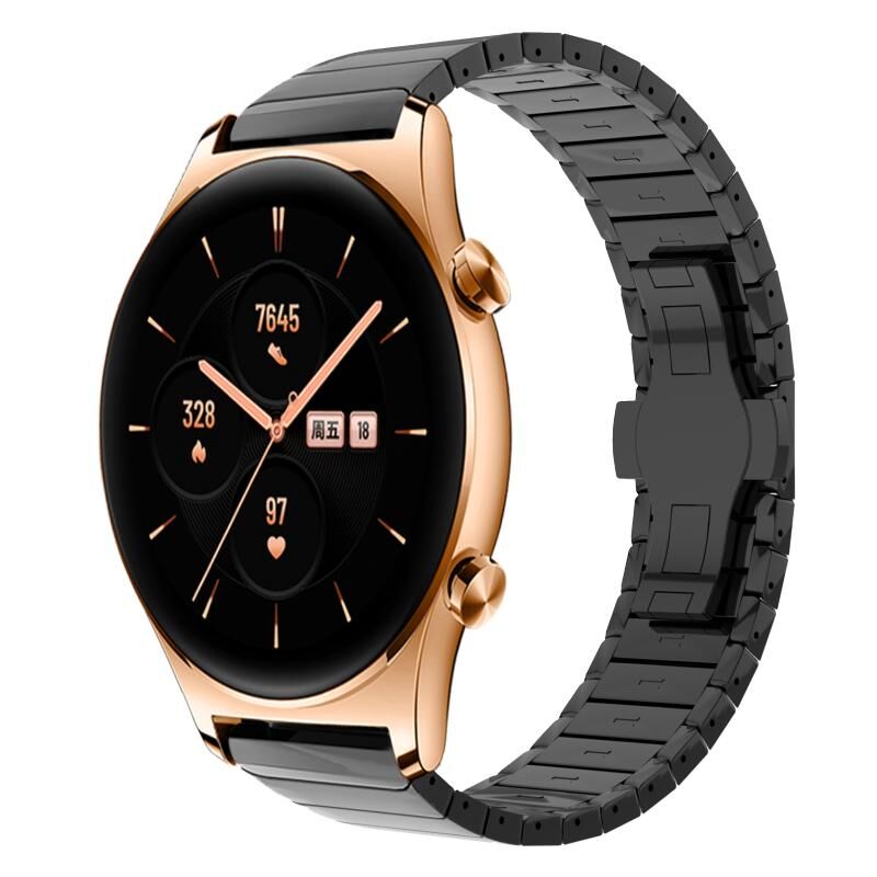 Για το Honor Watch GS 3 22 χιλιοστά μία χάντρα χρώμα πεταλούδα πόρπη κράμα ρολόι μπάντα ρολόι (μαύρο)