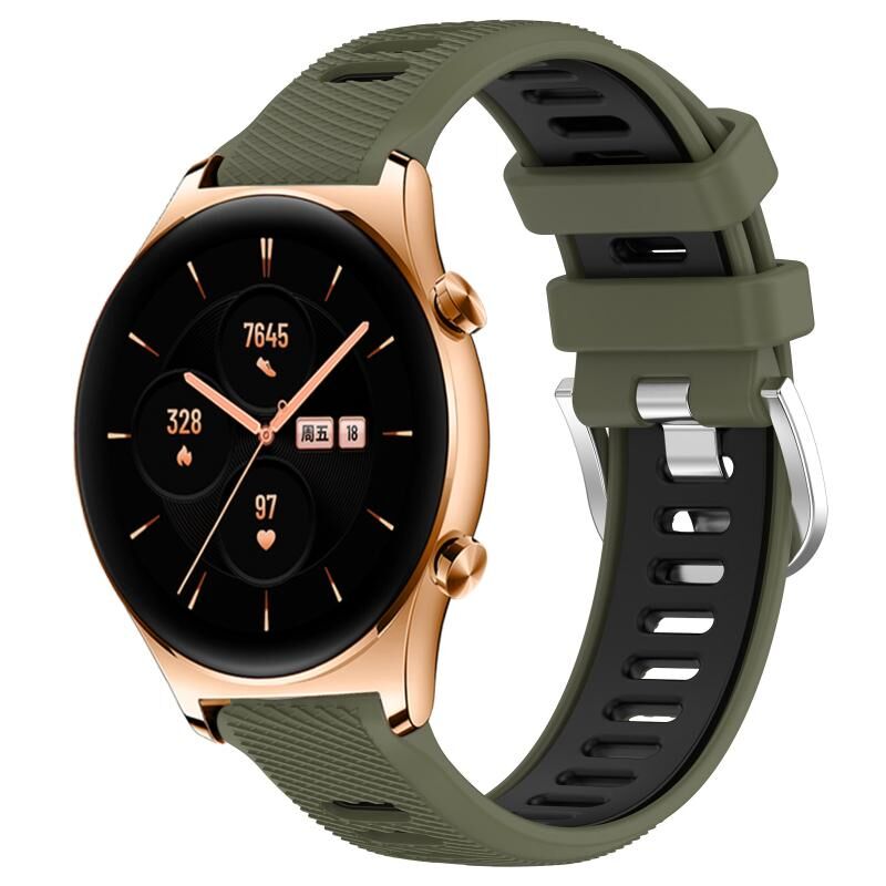 Για το Honor Watch GS 3 22mm Αθλητισμός Δύο χρωμάτων χάλυβα πόρπη σιλικόνης ρολόι μπάντα (Στρατού πράσινο + μαύρο)