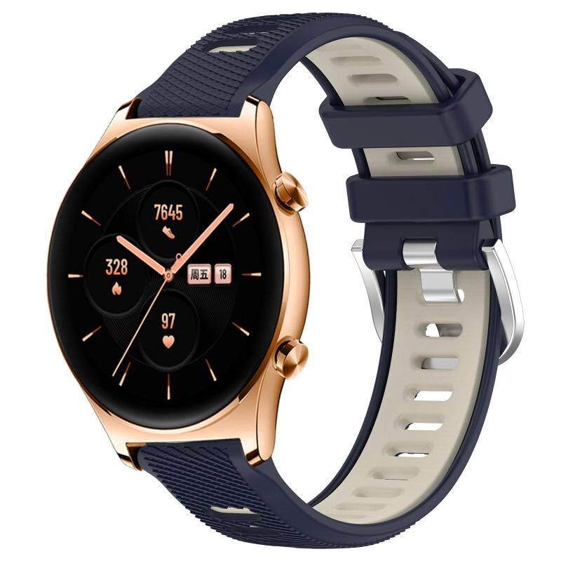 Για Honor Watch GS 3 22mm Αθλητισμός Δύο χρωμάτων χάλυβα πόρπη σιλικόνης ρολόι μπάντα (Midnight Blue + Starlight)