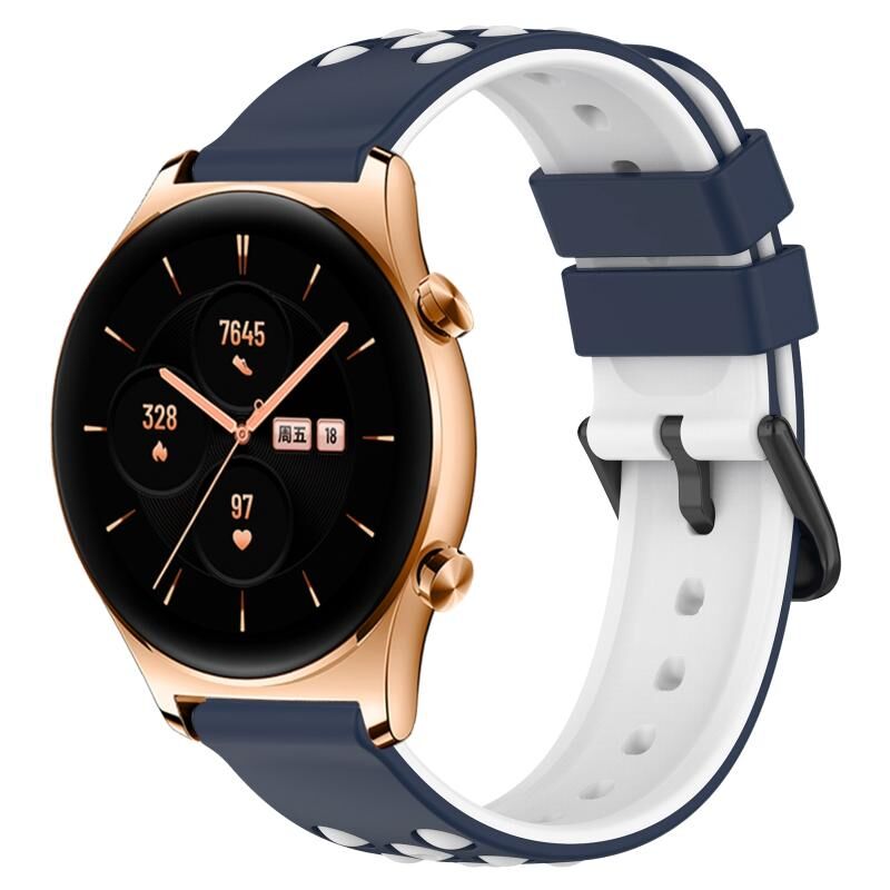 Για το Honor Watch GS 3 22mm Δύο χρωμάτων πορώδη ζώνη ρολογιού σιλικόνης (Μπλε μεσάνυχτα + Λευκό)
