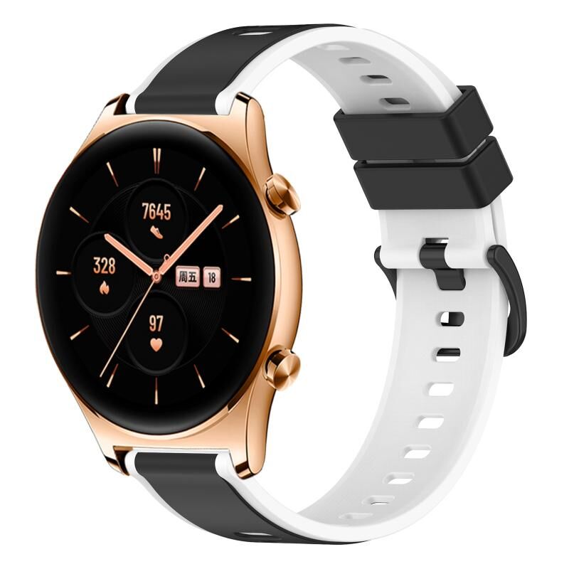 Για το Honor Watch GS 3 22mm Δύο-χρώμα σιλικόνης ρολόι μπάντα ρολογιού (μαύρο + λευκό)