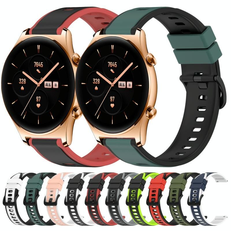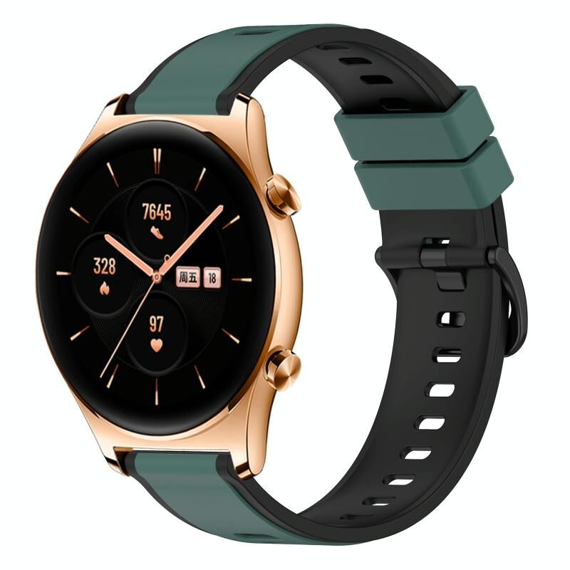 Για το Honor Watch GS 3 22mm Δύο-χρώμα σιλικόνης ρολόι μπάντα ρολογιών (πράσινο ελιάς + μαύρο)