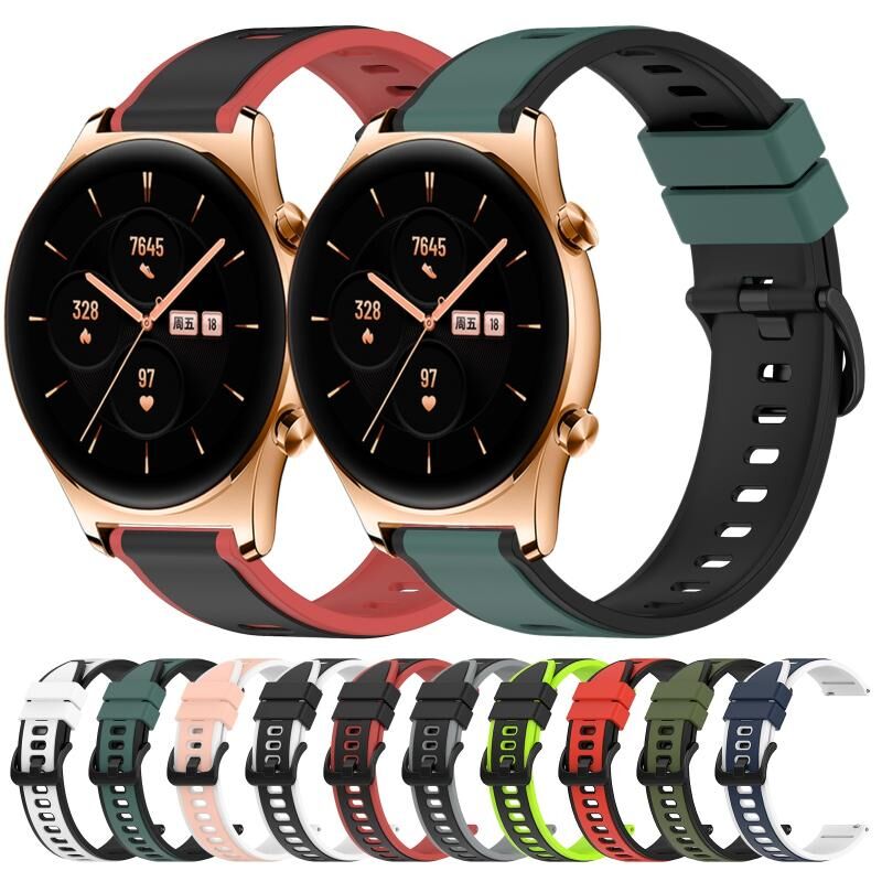 Για το Honor Watch GS 3 22mm Δύο-χρώμα σιλικόνης ρολόι μπάντα ρολογιού (Λευκό + Μαύρο)