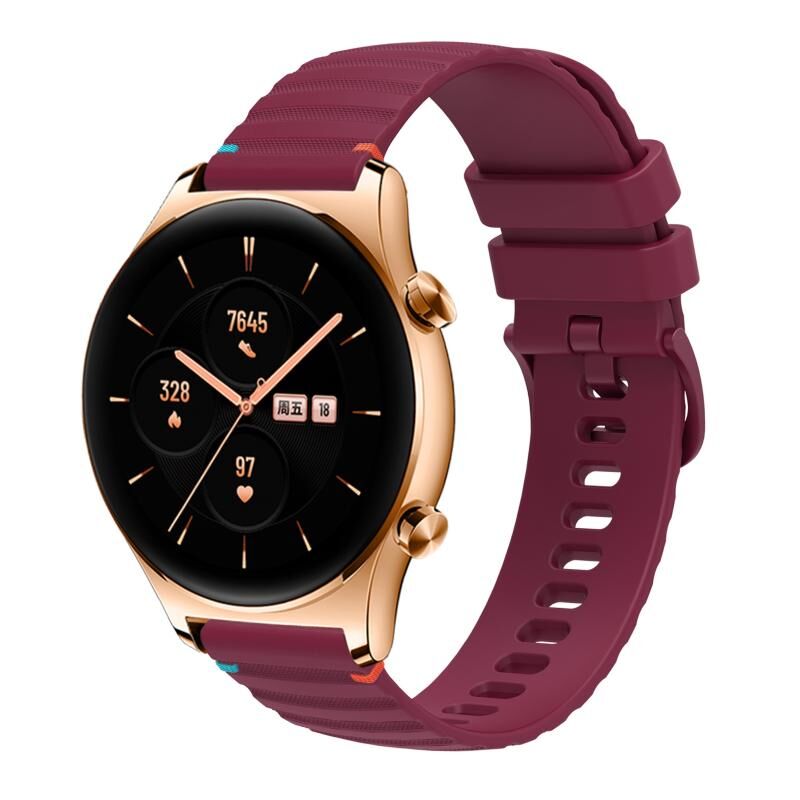 For Honor Watch GS 3 Wavy Dotted Stitched 22mm Silicone Watch Band(Wine Red)