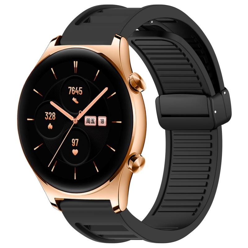 For Honor Watch GS 3 Window Blind Magnetic Buckle 22mm Silicone Watch Band(Black)