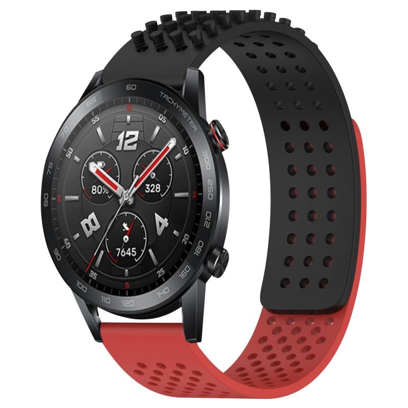 For Honor Watch GS 3i 22mm Holes Breathable 3D Dots Silicone Watch Band(Black+Red)