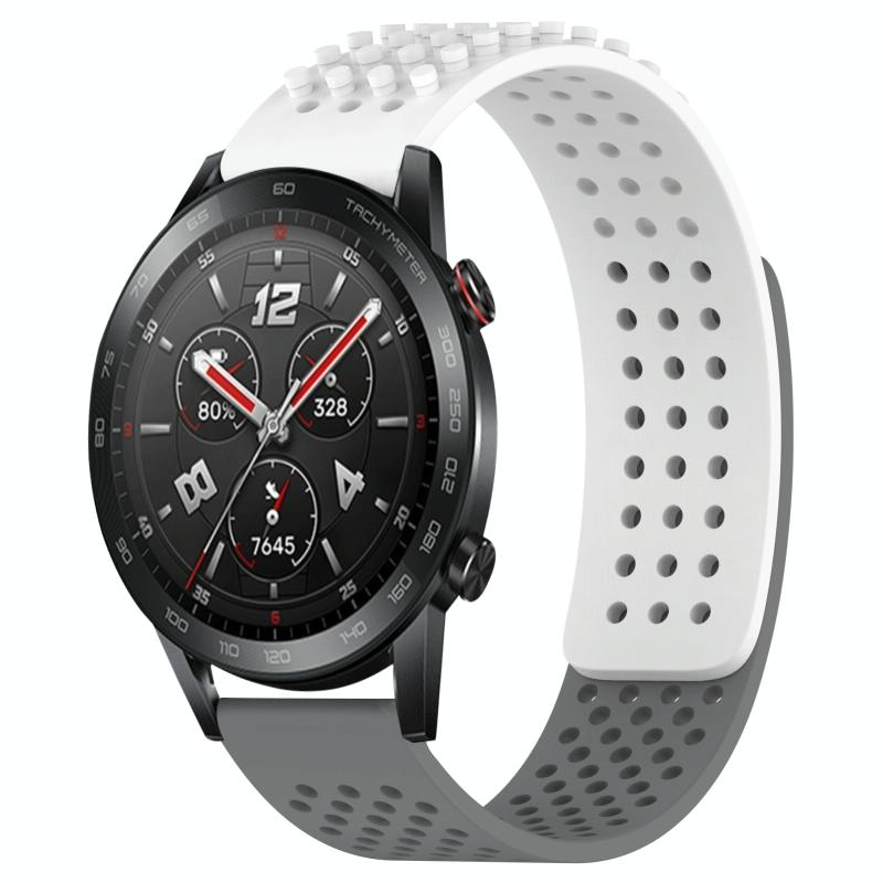 For Honor Watch GS 3i 22mm Holes Breathable 3D Dots Silicone Watch Band(White+Grey)