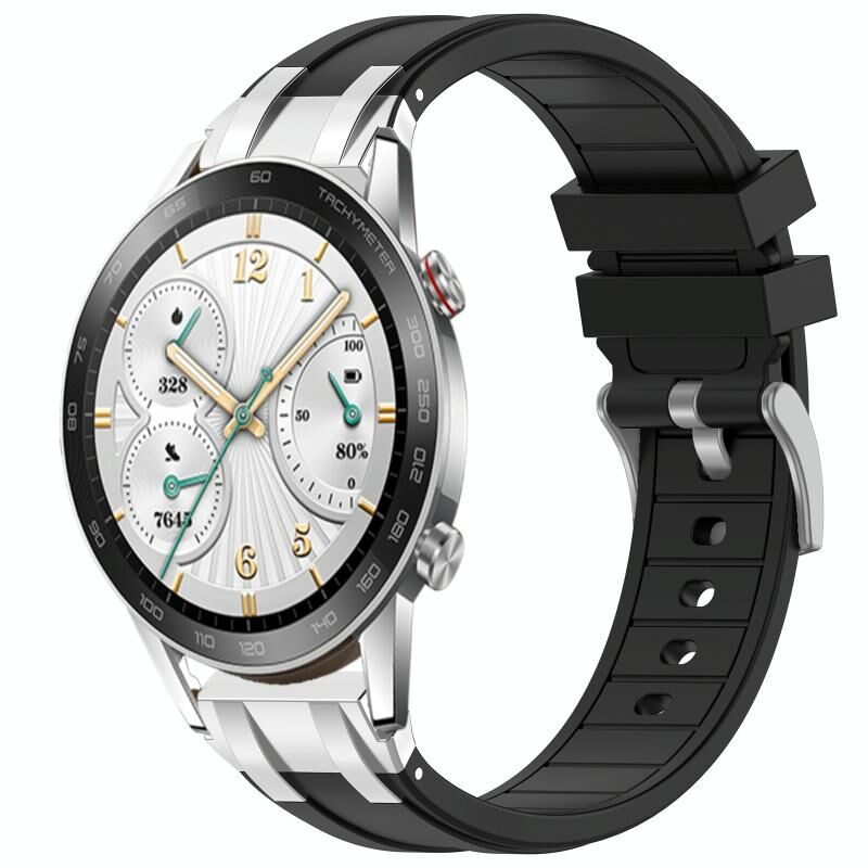 Για το Honor Watch GS 3i 22mm Quick Release Silver Buckle Royal Silicone Watch Band (Μαύρο)