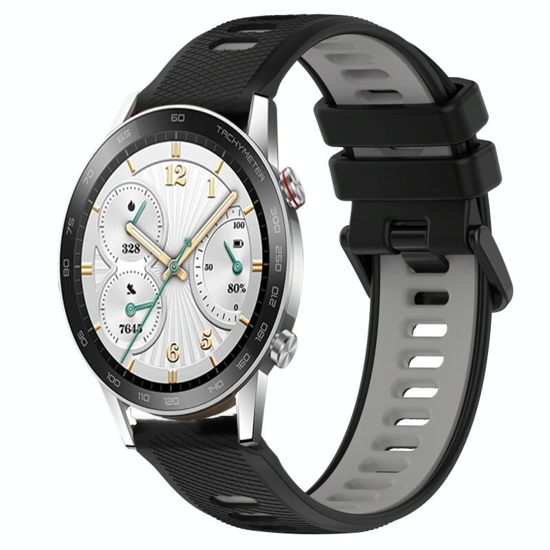 Για το Honor Watch GS 3i 22mm Αθλητική ζώνη ρολογιού σιλικόνης δύο χρωμάτων (μαύρο+γκρι)