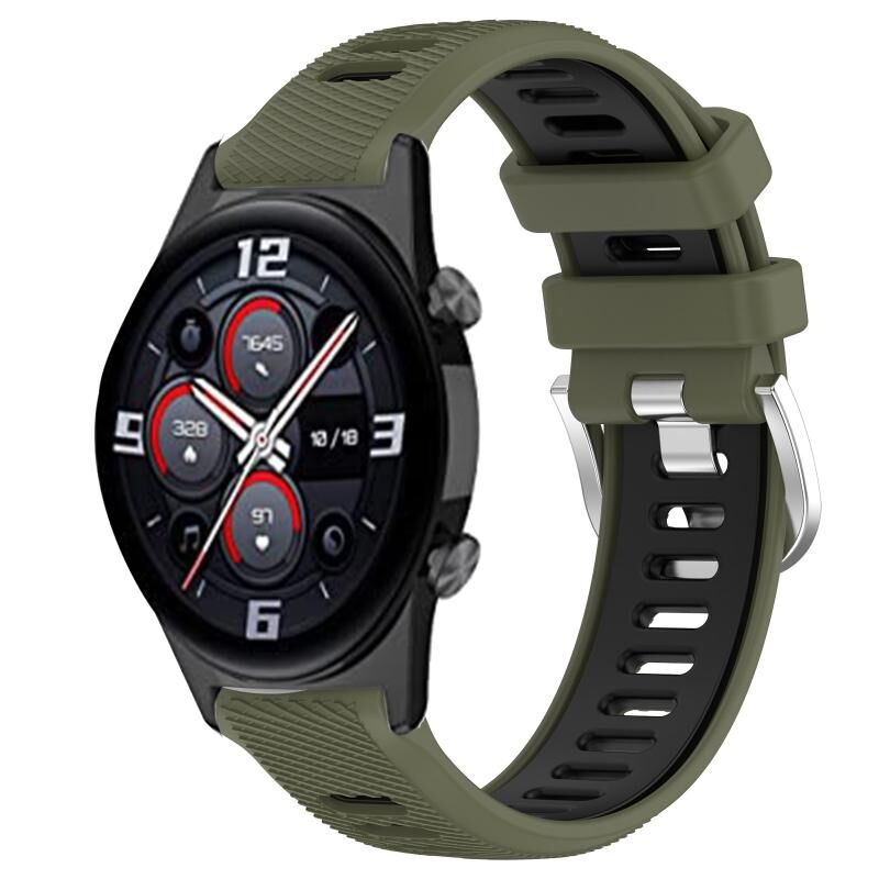 Για το Honor Watch GS 3i 22mm Αθλητισμός Δύο χρώματα χάλυβα πόρπη σιλικόνης ρολόι μπάντα (Στρατού πράσινο + μαύρο)