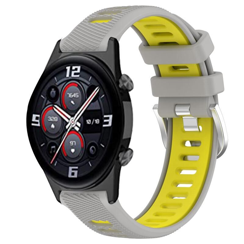 Για Honor Watch GS 3i 22mm Αθλητισμός Δύο χρώματα χάλυβα πόρπη σιλικόνης ρολόι μπάντα (γκρι + κίτρινο)