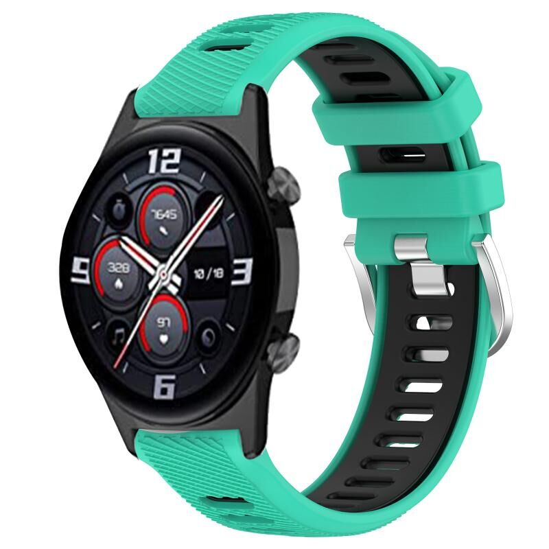 Για Honor Watch GS 3i 22mm Αθλητισμός Δύο χρωμάτων χάλυβα πόρπη σιλικόνης ρολόι μπάντα (Λίμνη μπλε + μαύρο)