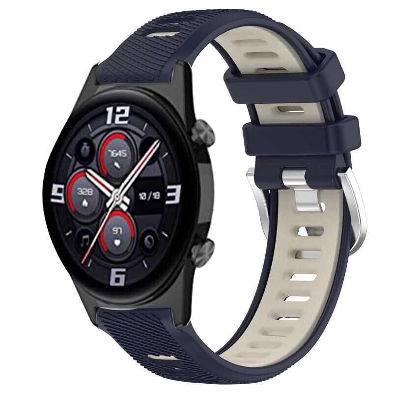 Για το Honor Watch GS 3i 22mm Αθλητισμός Δύο χρωμάτων χάλυβα πόρπη σιλικόνης ρολόι μπάντα (Midnight Blue + Starlight)