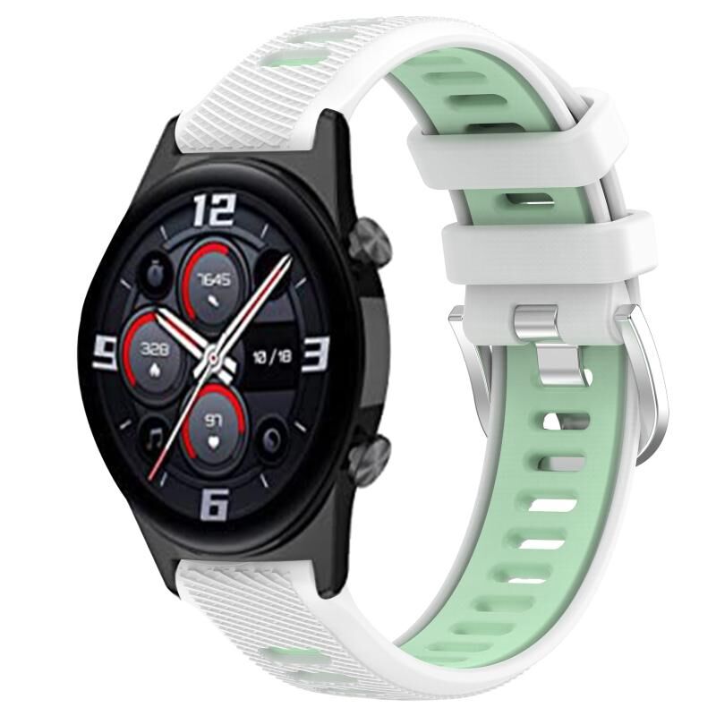 Για Honor Watch GS 3i 22mm Αθλητισμός Δύο χρώματα χάλυβα πόρπη σιλικόνης ρολόι μπάντα ρολογιών (λευκό + Teal)