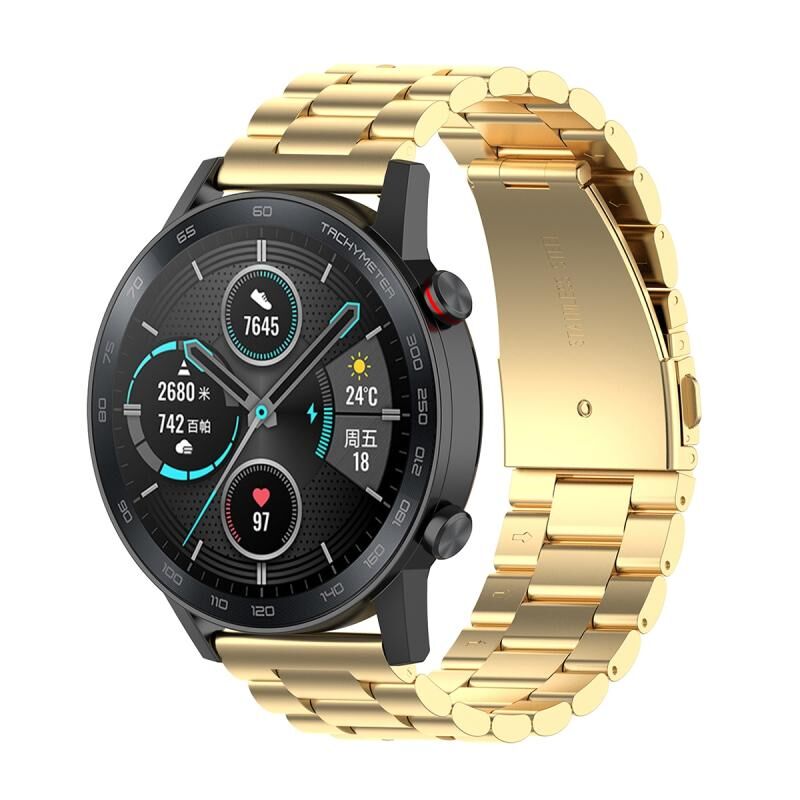 Για το Honor Watch GS 3i 22mm Τρεις χάντρες από ανοξείδωτο χάλυβα μεταλλική ζώνη ρολογιού (χρυσό)