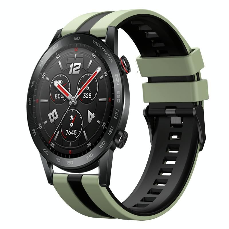 For Honor Watch GS 3i 22mm Two Color Sports Silicone Watch Band(Light Green+Black)