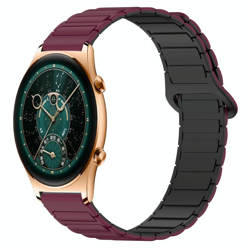 For Honor Watch GS 4 Dual Color Magnetic Buckle 22mm Silicone Watch Band(Wine Red+Black)
