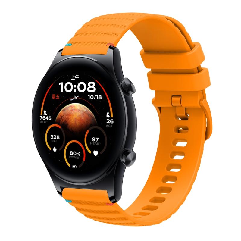 For Honor Watch GS 4 Wavy Dotted Stitched 22mm Silicone Watch Band(Amber Yellow)