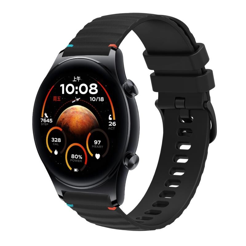 For Honor Watch GS 4 Wavy Dotted Stitched 22mm Silicone Watch Band(Black)
