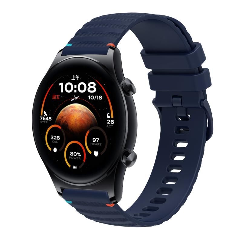 For Honor Watch GS 4 Wavy Dotted Stitched 22mm Silicone Watch Band(Navy Blue)
